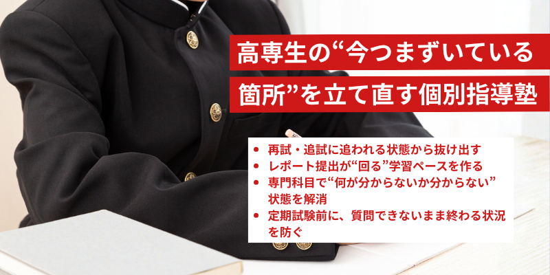 「赤点を回避したい」「専門科目の基礎を固めたい」高専生の学習をフルサポート。